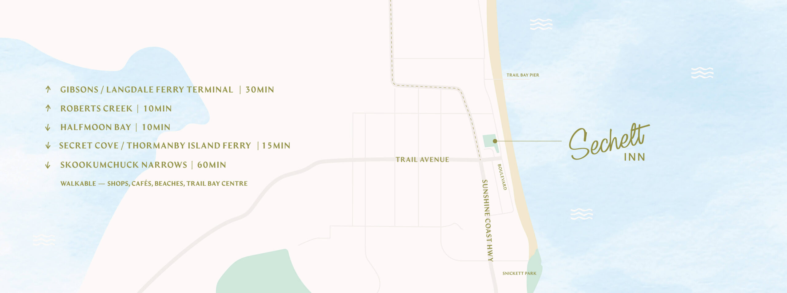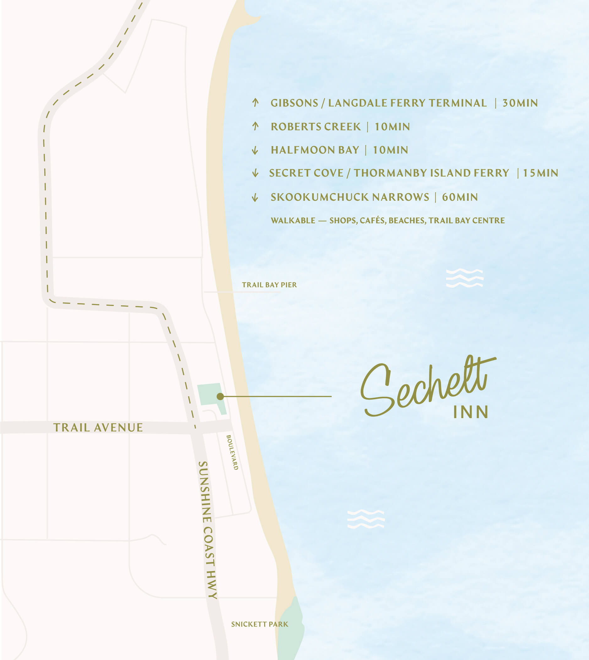 Welcome to Sechelt Inn, your laidback, beachside happy place in the heart of Sechelt. Bright, simple rooms, ocean air, and endless shoreline are just steps from your door. Whether you’re here for a long‑overdue weekend, a wedding or a quick work trip between ferries, this is the place to drop your bags and exhale.